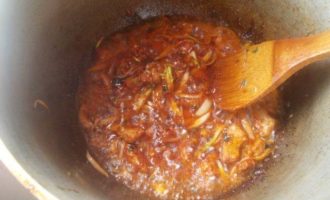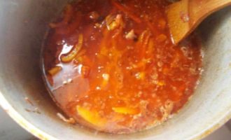 Добавить томатное пюре и продолжать мешать.