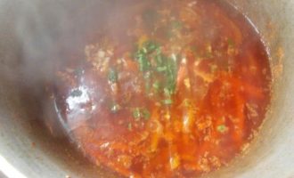 Тем временем наш подлив готов, добавить немного чесночка и зелени, пару минут потушить и выключить.