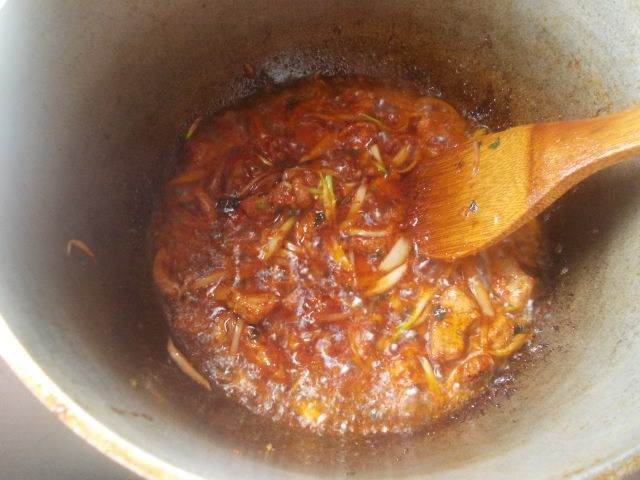 Добавить томатное пюре и продолжать мешать.