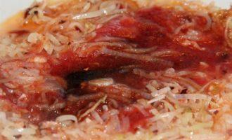Добавляем томатный сок, соевый и гранатовый соус. На сильном огне готовим до загустения соуса.
