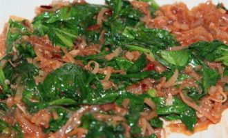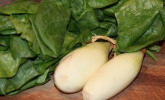 Нам понадобится две головки лука и два пучка шпината (получилось 150 грамм).