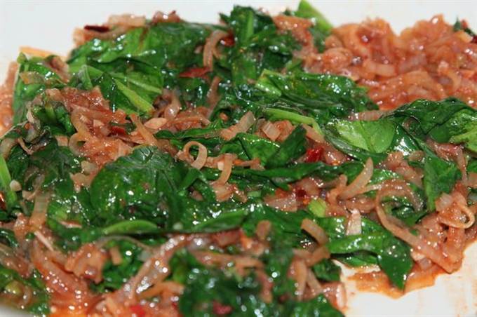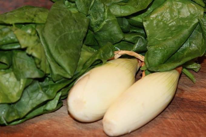 Нам понадобится две головки лука и два пучка шпината (получилось 150 грамм).