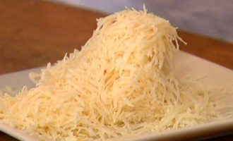 Треть пармезана натереть на крупной терке, остальной пармезан — на мелкой терке.