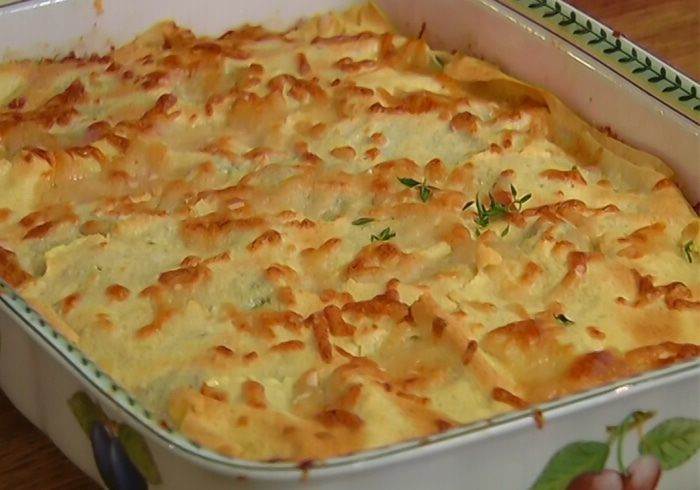 Выпекать лазанью в разогретой духовке 30 минут, затем посыпать оставшимися листьями тимьяна.