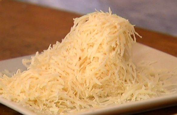 Треть пармезана натереть на крупной терке, остальной пармезан — на мелкой терке.