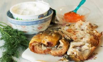 Сливочный сыр смешиваем с мелко нарубленным укропом. Из филе тщательно выбираем косточки.