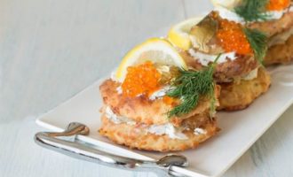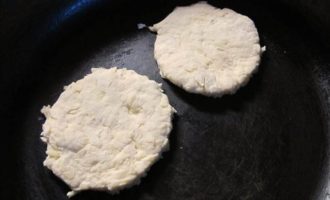 Тесто выкладываем небольшими лепешками на разогретую сковороду и жарим в оливковом масле до золотистого цвета. Остужаем.