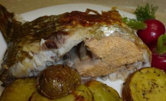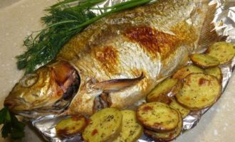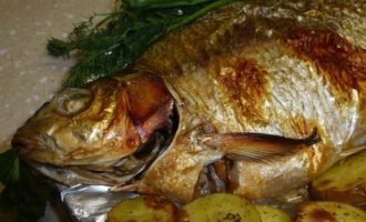 • Смазываем противень (или положенную на него фольгу) подсолнечным маслом и укладываем на него леща, которого сверху также обильно смазываем маслом. Запекаем рыбу до готовности при температуре 180 — 200 гр. У меня ушло на запекание, с учетом того, что внутри леща сырая икра, 50-60 минут. В процессе готовки пару раз достаем рыбу из духовки, чтобы смазать маслом.