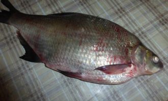 • Леща помыть, почистить и удалить жабры. Плавники и хвост я не обрезаю, т.к. люблю ими похрустеть, когда рыба готова, да и выглядит лещ с плавниками и хвостом в готовом виде аппетитнее.