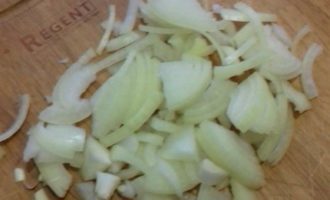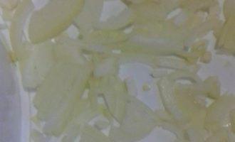 Порезанный лук сложить в емкость, в которой у вас будет фасоль.