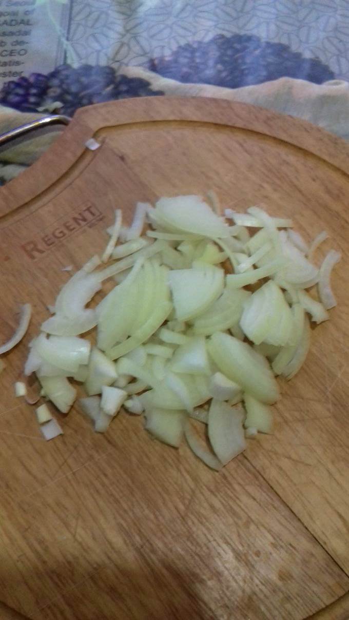 Порезанный лук сложить в емкость, в которой у вас будет фасоль.