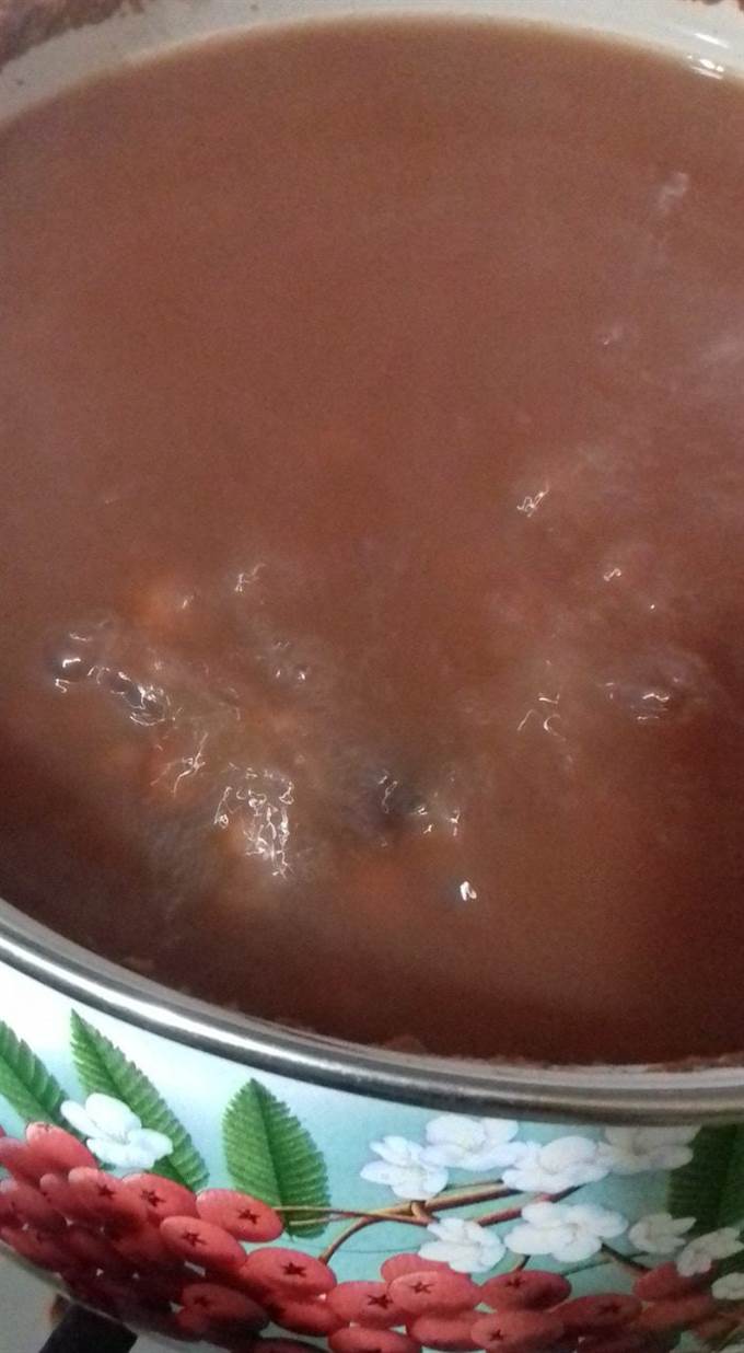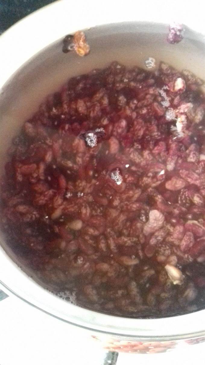 Это состояние воды примерно через час. Если вода выкипела надо добавить вновь. Фасоль всегда должна быть покрыта водой.
