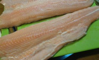 Рыбу помыть, разделать, почистить и приготовить филе. Или взять готовое.