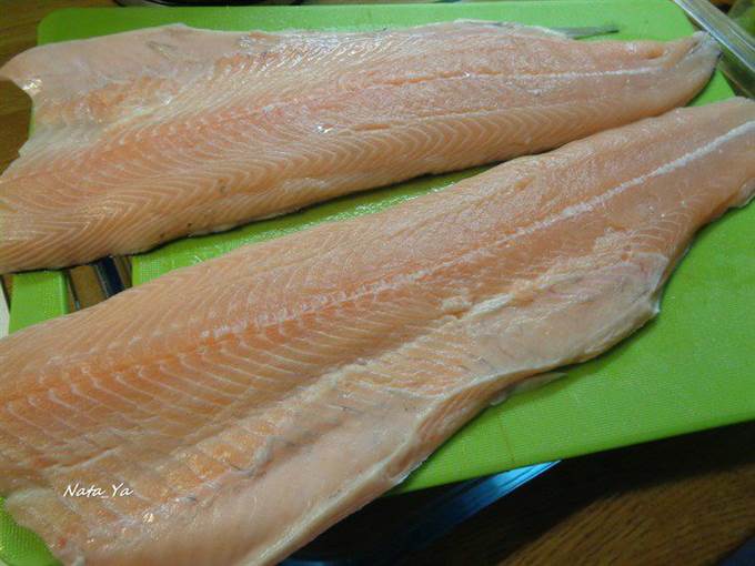 Рыбу помыть, разделать, почистить и приготовить филе. Или взять готовое.