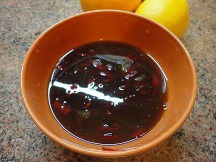 • Цедру 1 лимона натереть и выжать из лимона сок. Очистить перец чили от семян, мелко нарезать и смешать с соевым соусом, медом, соусом чили, солью, цедрой и соком лимона.
