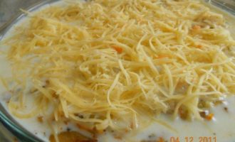 Посыпаем сыром и отправляем в духовку на 30-40 минут при 200 гр.