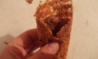 Тем временем, можно приготовить картофельные блинчики. Для этого нужно сварить картофель и взбить воздушное пюре, без комков, напоминающее крем. Пюре готовить с добавлением молока и сливочного масла. Разогреть вафельницу, смазать маслом. Из одной столовой ложки пюре, получается один блинчик.