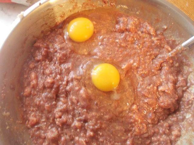 Всыпать овсянку в фарш, посолить, поперчить, добавить яйца и хорошенько перемешать. Оставить на час, за это время овсяные хлопья разбухнут и фарш станет гуще.