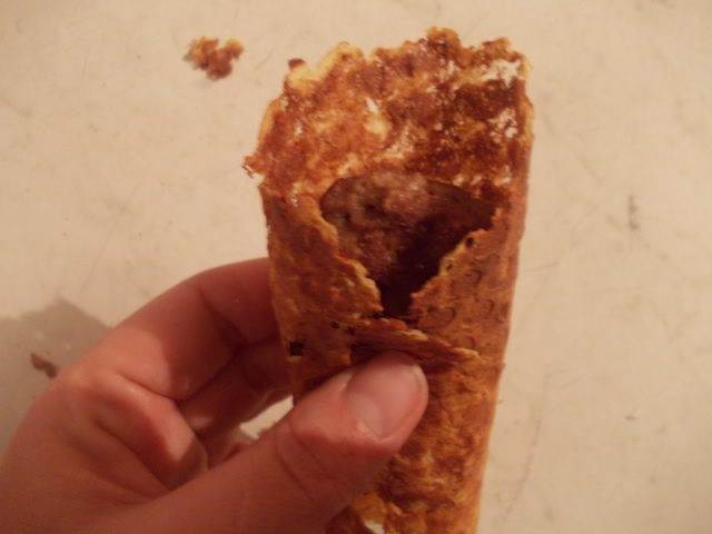 Тем временем, можно приготовить картофельные блинчики. Для этого нужно сварить картофель и взбить воздушное пюре, без комков, напоминающее крем. Пюре готовить с добавлением молока и сливочного масла. Разогреть вафельницу, смазать маслом. Из одной столовой ложки пюре, получается один блинчик.