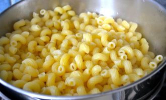 Отварить тем временем макароны в подсоленном кипятке, откинуть на дуршлаг.