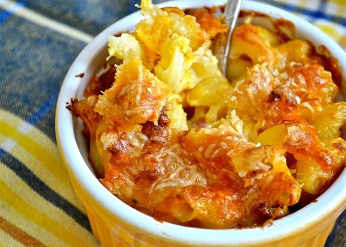 Отваренные макароны смешать с сырным соусом и луком с беконом, выложить в смазанную маслом форму для запекания, посыпать оставшимся сыром (чеддер и пармезан)…