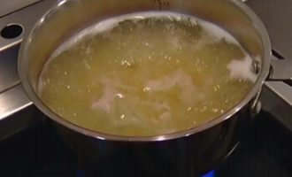 Отварить макароны в подсоленной воде, затем воду слить и сохранить.