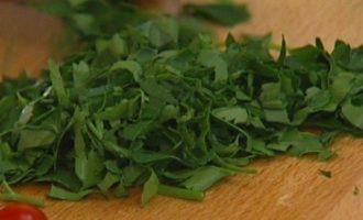 Петрушку мелко порубить.