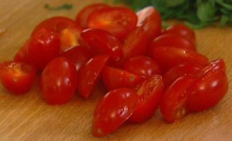 Помидоры черри разрезать пополам.
