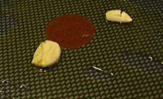 Разогреть в сковороде оливковое масло и слегка обжарить чеснок.