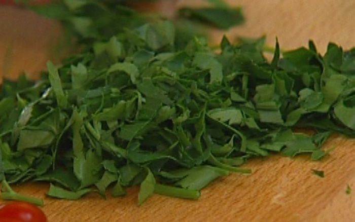 Петрушку мелко порубить.