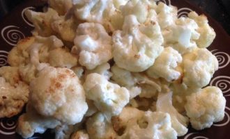 На раскаленную сковороду налейте масло и обжарьте цветную капусту. Выложите.
