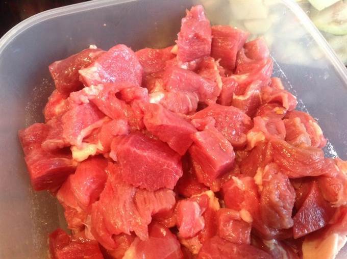 Добавьте баранину и жарьте, пока не подрумянится, посолите, приправьте специями заатар (1 ст.л.), добавьте чеснок.