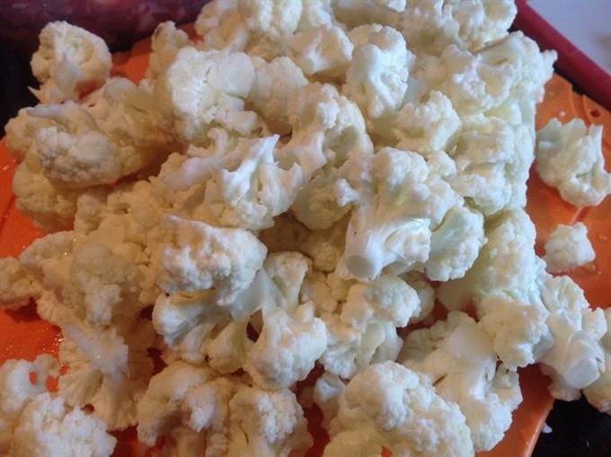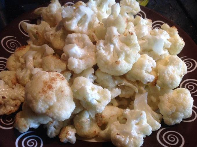 На раскаленную сковороду налейте масло и обжарьте цветную капусту. Выложите.