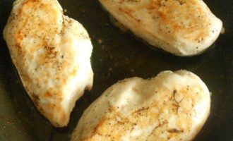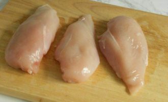 Куриное филе помыть, обсушить бумажными полотенцами, приправить солью и перцем.