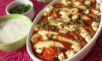 Форму вынуть из духовки и подавать на стол с мятным йогуртом и оставшейся мятой.