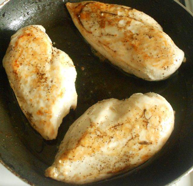 Тем временем, нагреть в сковороде 2 ст. л. оливкового масла и обжарить мясо по 5 мин с каждой стороны, вынуть и отложить в сторону.