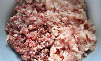 Для приготовления я использовала фарш, из 3-х видов мяса: 400 г свинина + говядина и 300 г фарша из индейки. Вы можете использовать и фарш, приготовленный только из говядины, и свинина+говядина, а так же, использовать, как и я, смесь трёх видов мяса.