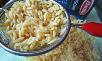 Есть ещё паста orzo, которая также по своей форме напоминает крупный рис или зерно. Поэтому в этом блюде можно использовать как пасту рисони, так и орзо. -