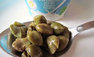 Приготовить соус. Для этого потребуется натуральный йогурт и 1 ст л с горкой каперсов.