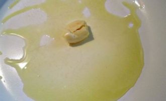 В сковороде нагреть 1 ст л оливкового масла, обжарить раздавленный зубчик чеснока. Слегка обжарить и затем удалить чеснок.