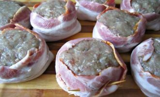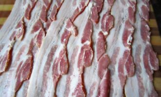 Подготовить бекон (в упаковке как раз 8 полосок).