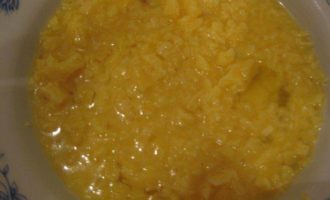 Взбить яйца и потереть мелко сыр. Все перемешать.