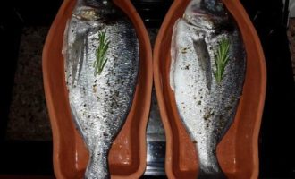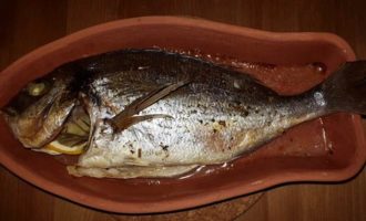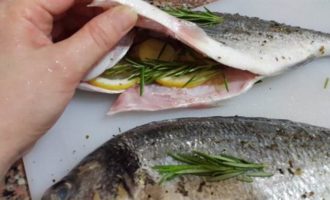 Морской лещ, запеченный с розмарином, лимоном и имбирем