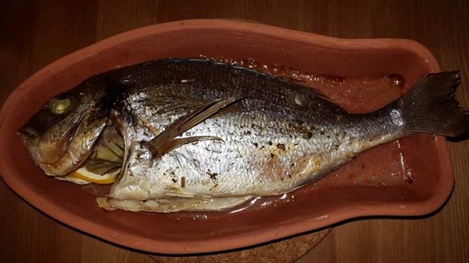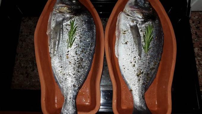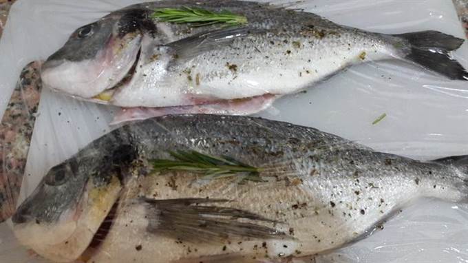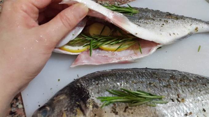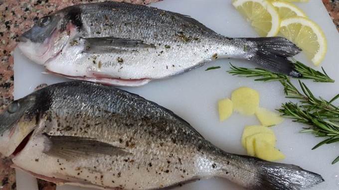 Морской лещ, запеченный с розмарином, лимоном и имбирем