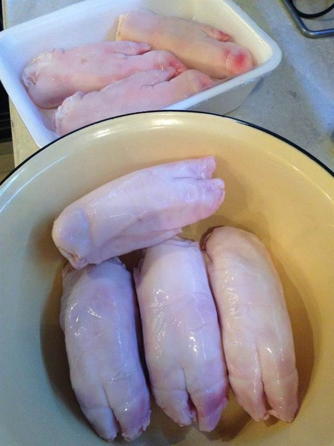 Ножки почистить и промыть. Важно, чтобы на ножках не осталось ни одного волоска!