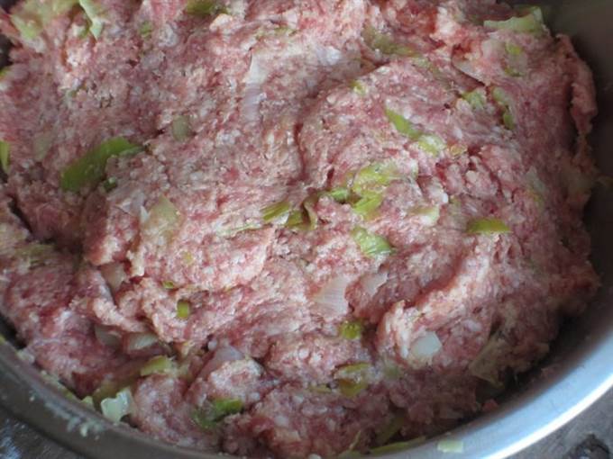 Соединить фарш, яйца, лук, хорошо отжатый хлеб, пармезан, панировочные сухари, посолить, поперчить, хорошо перемешать.