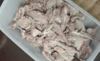 Мясо берем отварное, у меня голень индейки, но может быть говядина, свинина и т.п.