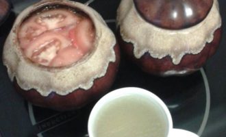 Затем отправляем в духовку разогретую до 210 градусов. Как только жидкость закипит, (т.е. градусник покажет 100 градусов) убираем температуру до 180 градусов и оставляем горшочки в духовке не более чем на 10 минут. Все продукты у нас готовы им только нужно между собой «пожениться». Остывать такой горшочек будет долго, так что наберитесь терпения и готовьте заранее!