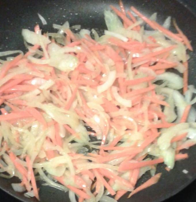 Колбаски охотничьи режим на колечки примерно 2-3 см, затем обжариваем на растительном масле.
