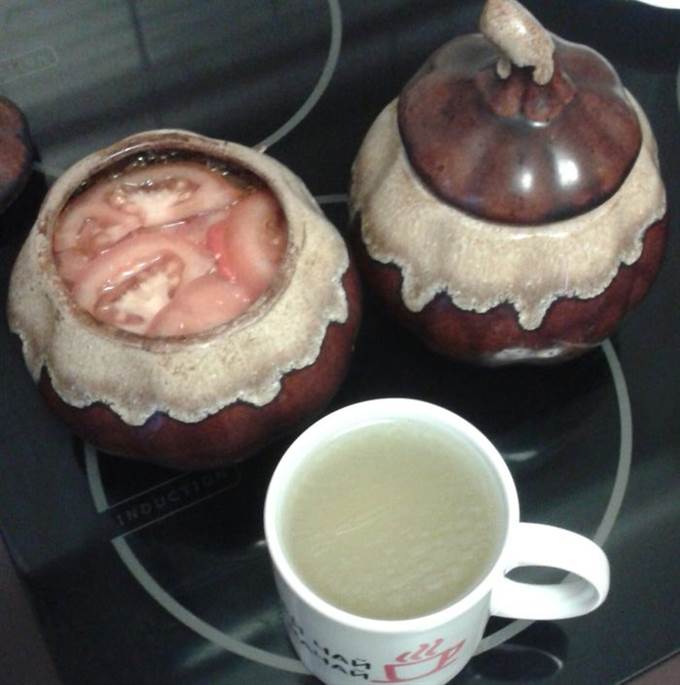 Затем отправляем в духовку разогретую до 210 градусов. Как только жидкость закипит, (т.е. градусник покажет 100 градусов) убираем температуру до 180 градусов и оставляем горшочки в духовке не более чем на 10 минут. Все продукты у нас готовы им только нужно между собой «пожениться». Остывать такой горшочек будет долго, так что наберитесь терпения и готовьте заранее!
